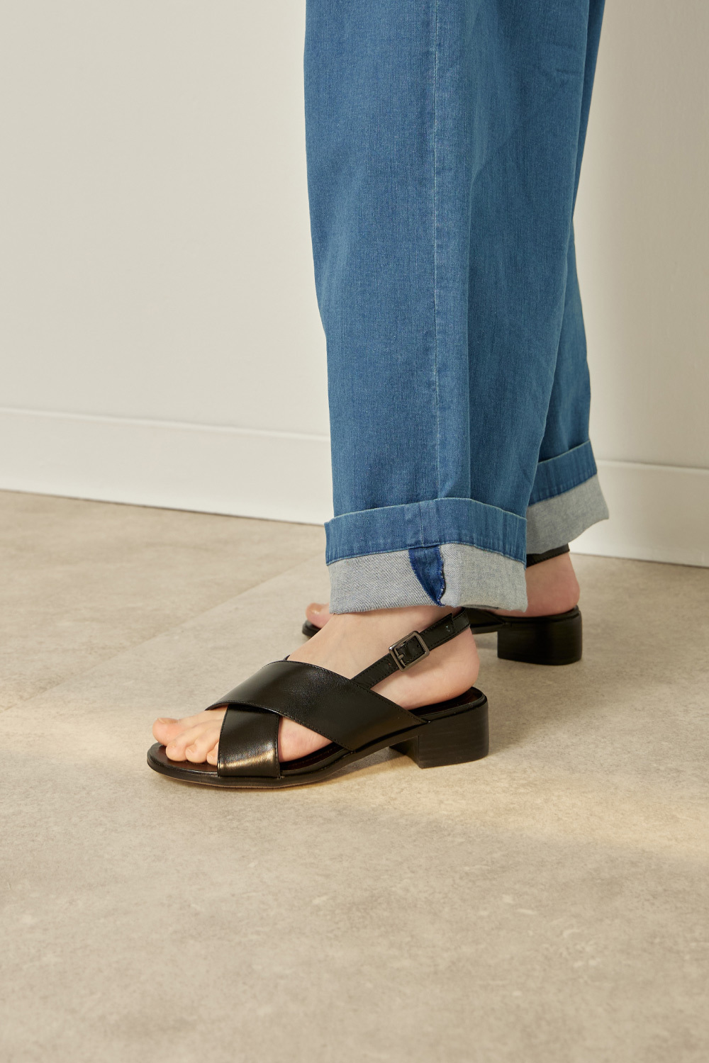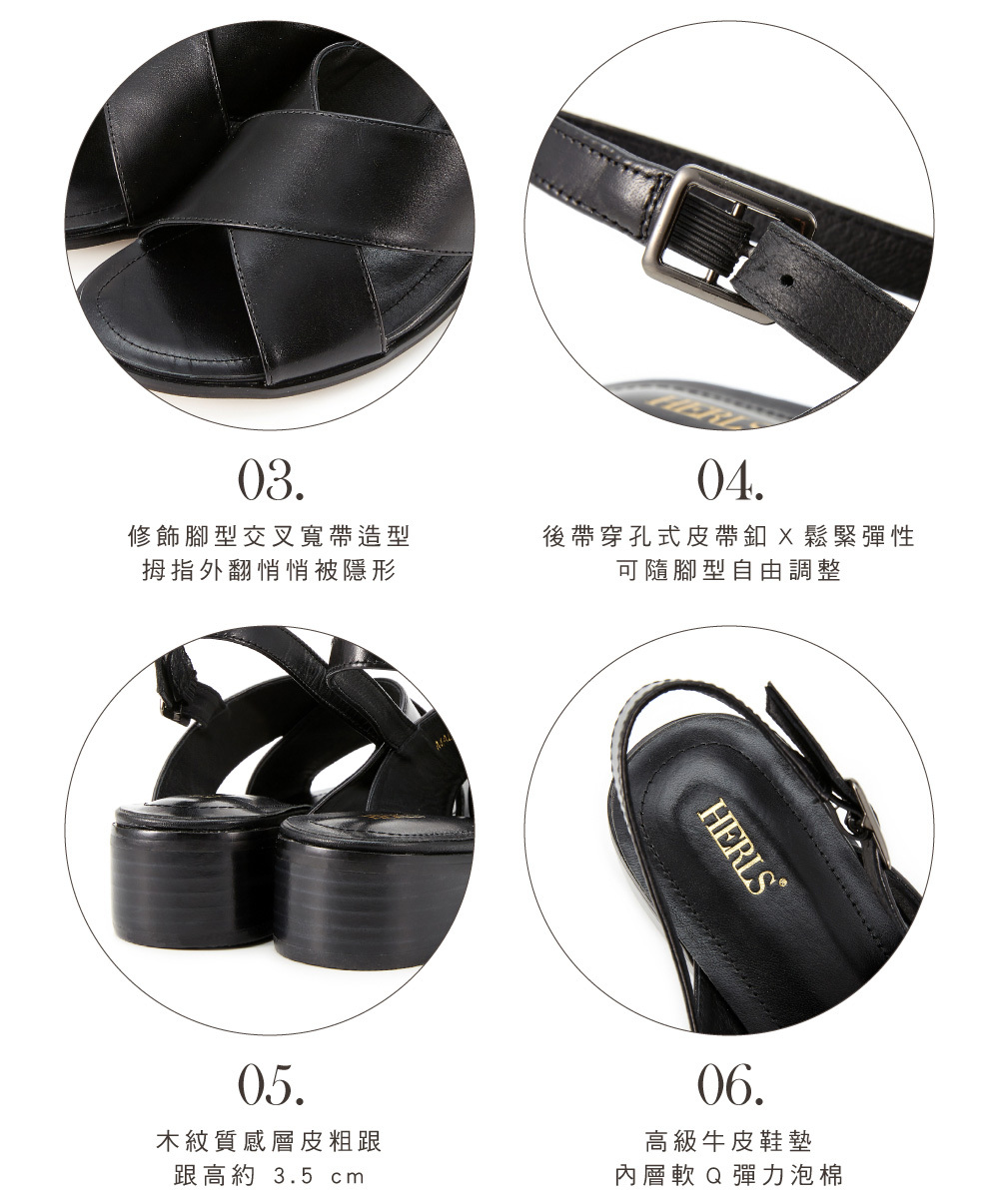 │木紋質感層皮粗跟,跟高約 3.5 cm