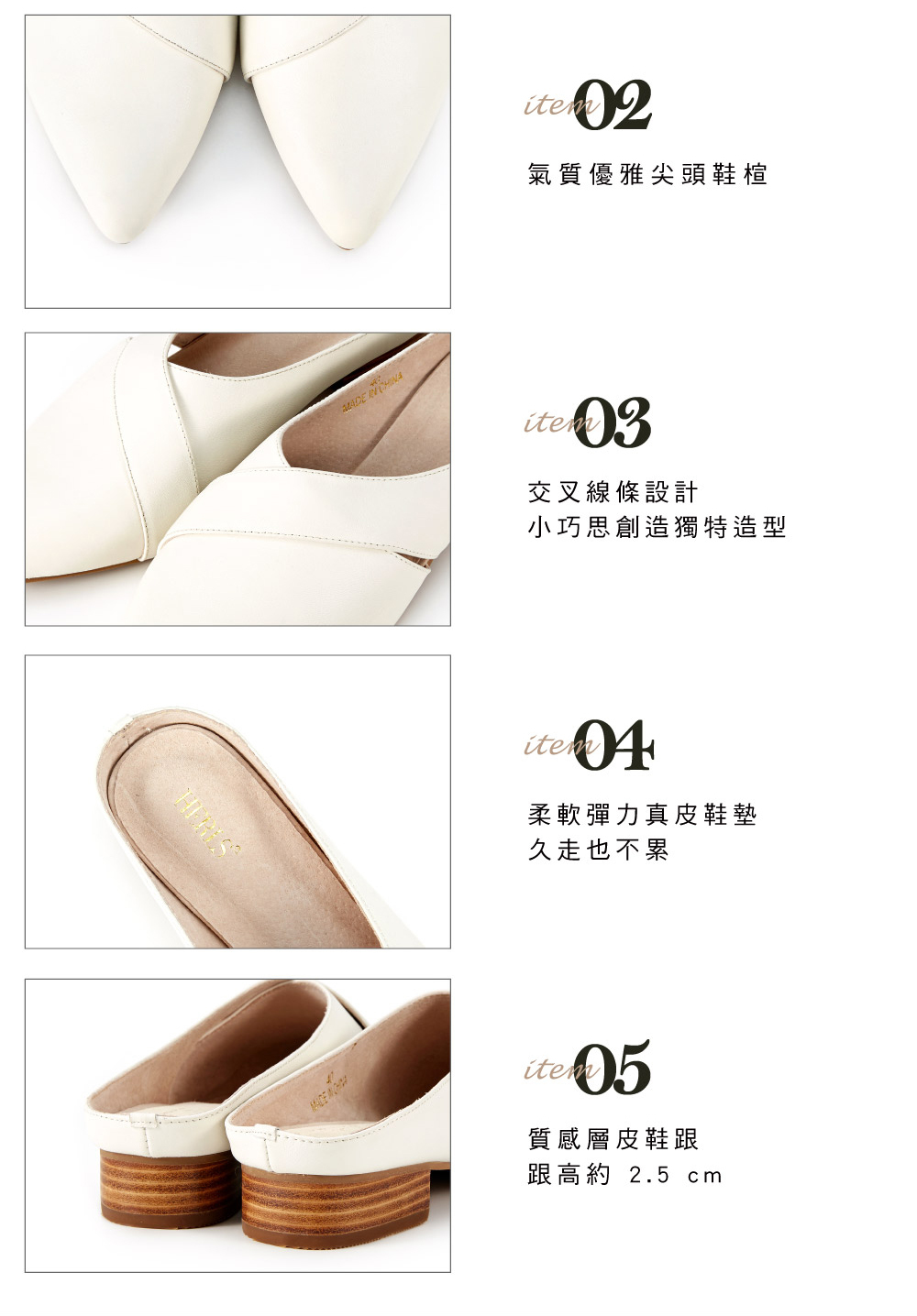 │質感層皮鞋跟,跟高約 2.5 cm