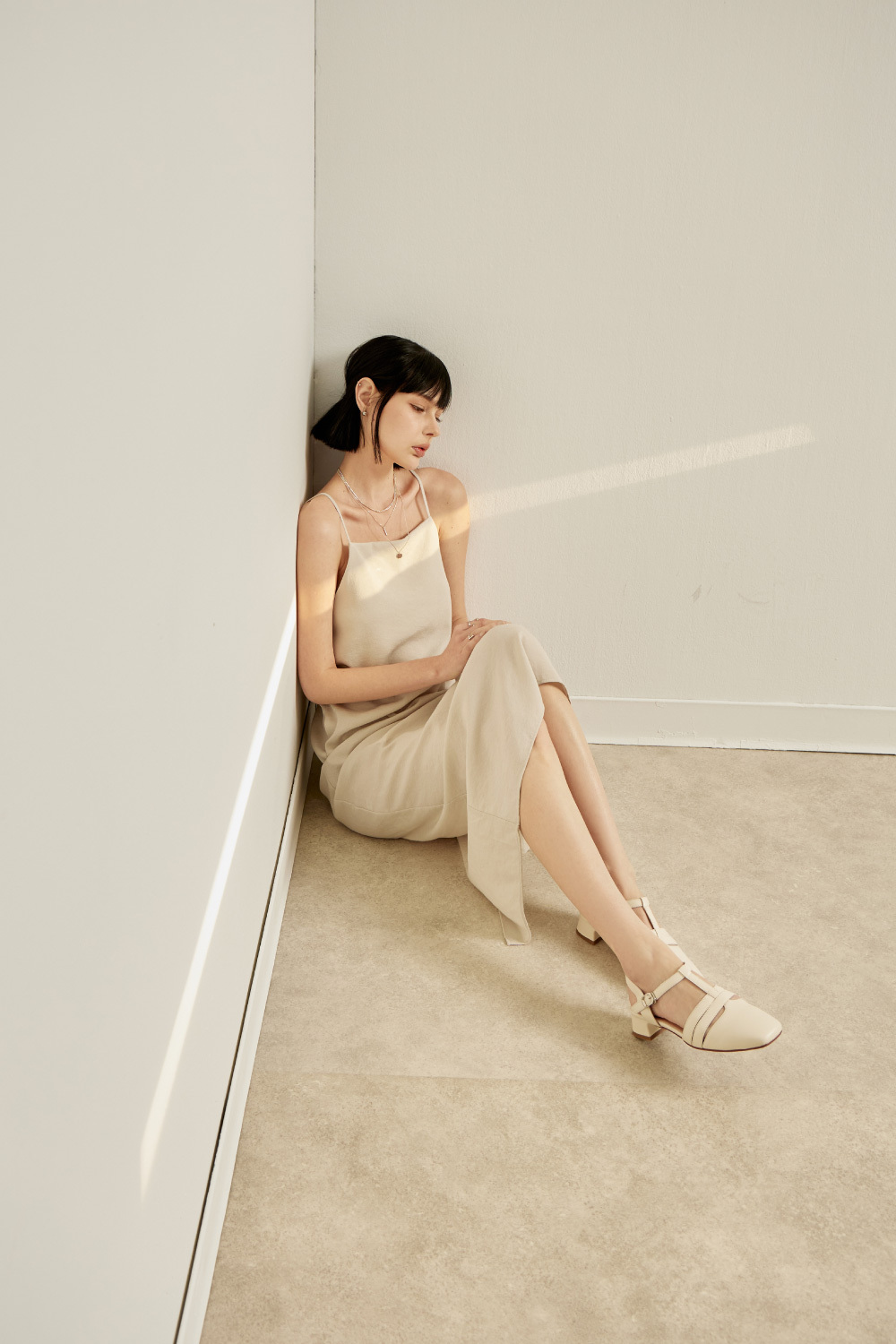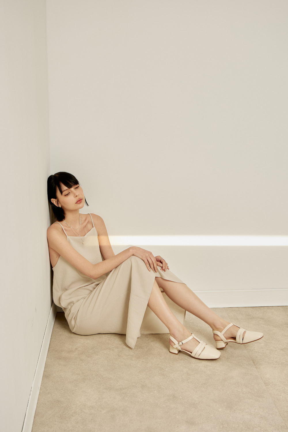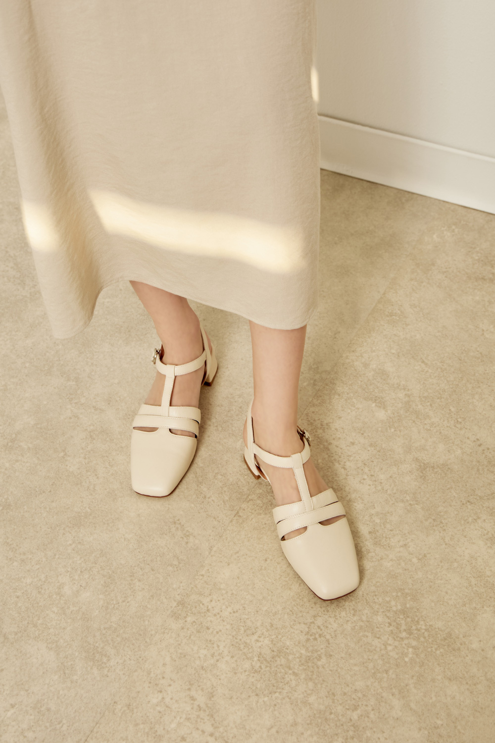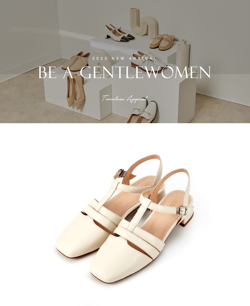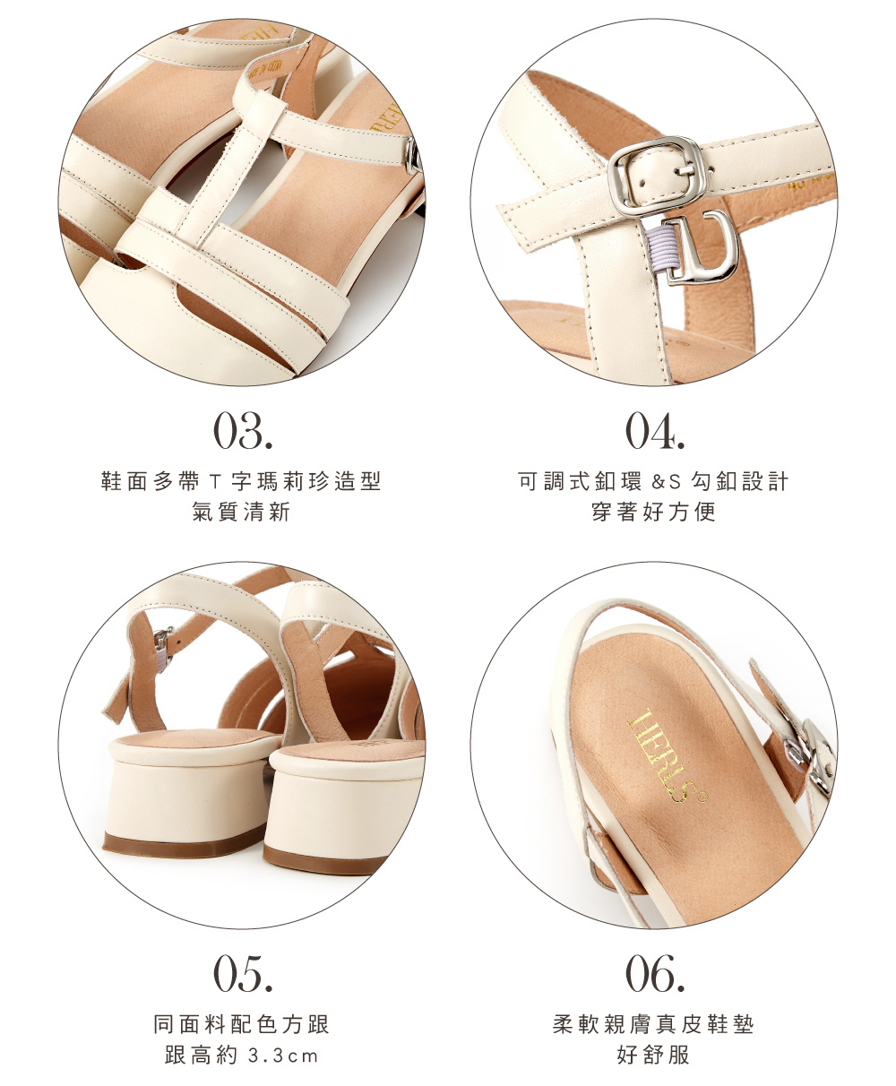 零碼↘全真皮多帶T字瑪莉珍後帶低跟鞋涼鞋 米白色