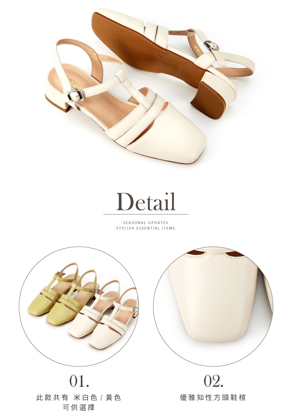 │同面料配色方跟,跟高約3.3cm