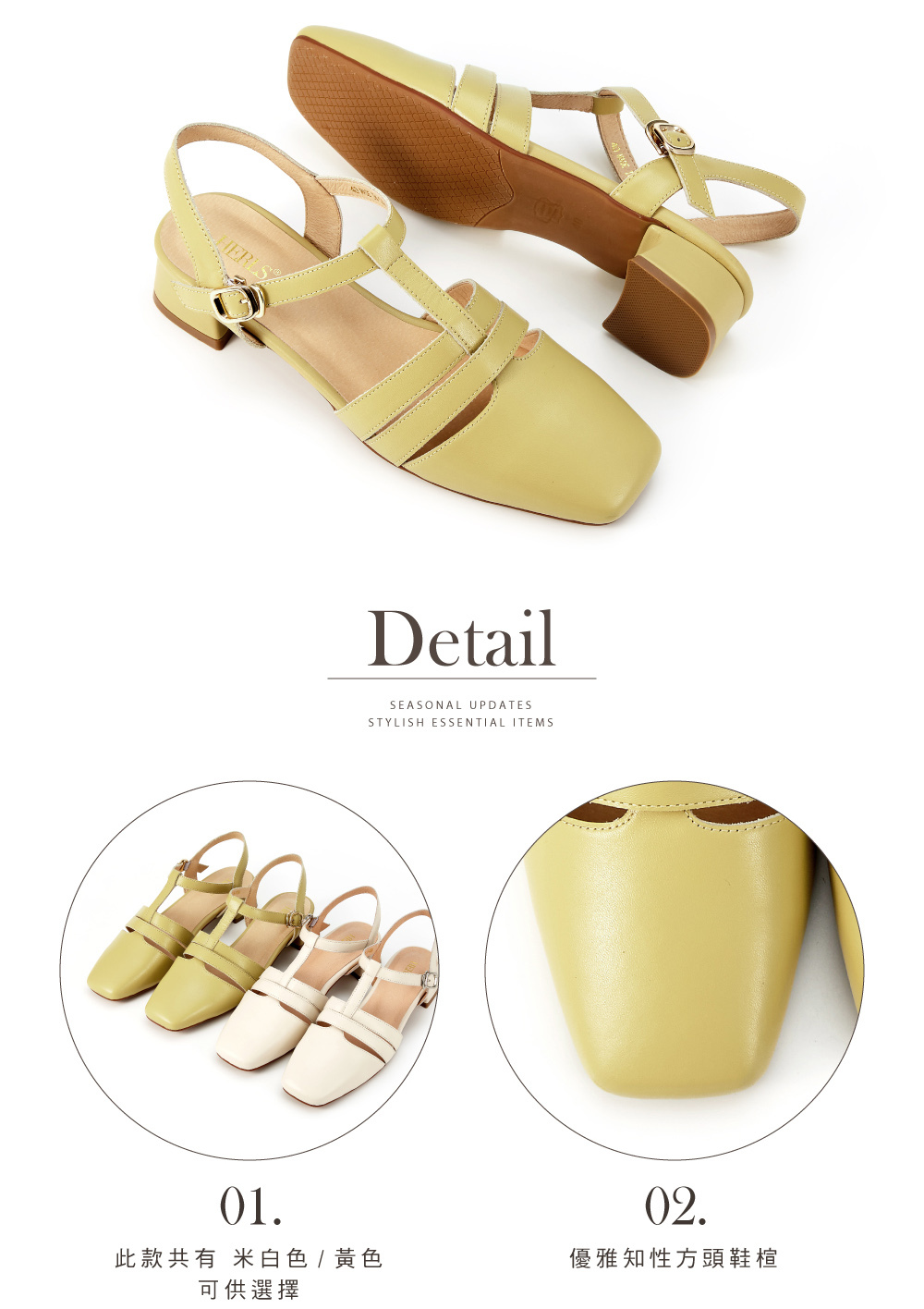 │同面料配色方跟,跟高約3.3cm